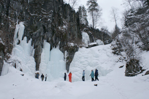 Где-то глубоко подо льдом журчала речка, в вершинах деревьев оживлённо дискутировали кедровки, обсуждая неожиданных в это время года гостей. А гости не хотели покидать застывший водопад, пытаясь запечатлеть чудо Природы в своей памяти. Однако уходящий день заставил, после небольшого отдыха, двинуться в обратный путь. И вновь под ногами заскользил телецкий лёд, прозрачность которого порой рождала ощущение водной глади…..