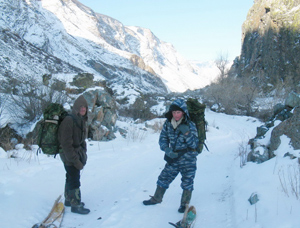 В местах концентрации копытных отмечены и следы хищников - волка, рыси, росомахи. Например, стая волков, из 5-ти особей, контролирует долину нижнего течения реки Шавла. По мнению государственных инспекторов, принимавших участие в ЗМУ по этому маршруту (Александра Пономарева и Якова Шичкова) – условия проведения были достаточно жесткие. Так, на протяжении более трех недель учетная группа работала при -25 градусах и более низких температурах, что в условиях высокогорья и труднопроходимой местности – непросто. Обилие снега повышало уровень сложности проведения учетных работ. «Не всегда удавалось доходить до избушки в течение короткого зимнего дня, несколько раз приходилось ночевать в тайге, у костра», - рассказывают инспекторы.