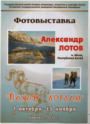 С 7-го октября 2010 года в Государственном музее истории литературы, искусства и культуры Алтая - ГМИЛИКА (г. Барнаул) работает фотовыставка «Поход Аргали», автор которой – Александр Лотов, сотрудник Алтайского биосферного заповедника.