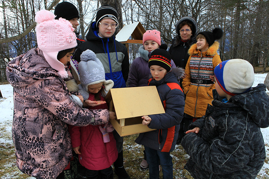 Добрая зима для птиц Клуб друзей Алтайского биосферного заповедника "Заповедная школа" (с.Яйлю, Яйлинская школа) принимает участие во Всероссийской акции "Покормите птиц!". Ребята клуба вместе с руководителем Ниной Владимировной Лотовой проводят беседы о том почему и как надо помогать птицам зимой. Участниками клуба изготовлены кормушки, которые ребята развесили вблизи школы, а "угощение" для птиц было предоставлено Алтайским биосферным заповедником.