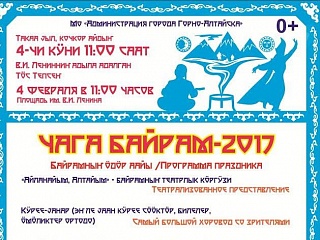 Алтайский Новый год проводится с началом новолуния в конце февраля – начале марта и называется Чага – байрам. "Чага-байрам" в переводе означает "Белый праздник" - это алтайский Новый год. Праздник начинается с началом новолуния в конце февраля - начале марта. Дата наступления Чага-Байрам определяется с учетом лунного календаря и празднуется в один из трех первых четных дней с начала новолуния. Это древний праздник, определенный сезонными хозяйственно-трудовыми нормами быта и уклада жизни в соответствии с солнечно-лунными циклами. Чага-Байрам также отмечается монголами, тувинцами, бурятами, калмыками, и даже народами Тибета и Индии.