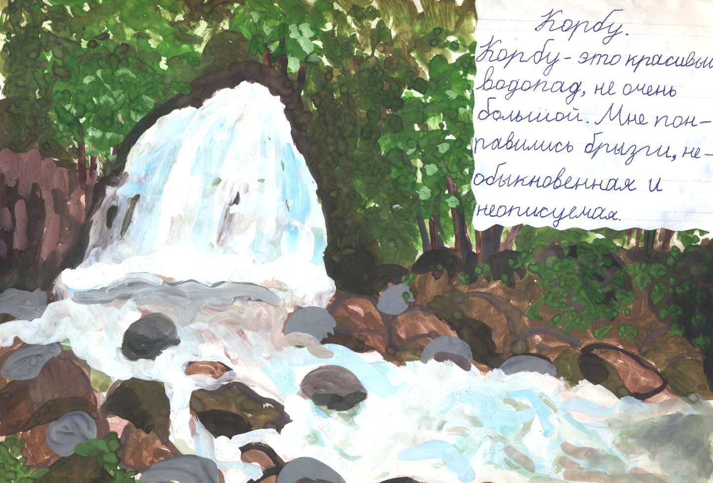 Автор рисунка «Водопад Корбу» - Бадмацыренова Юмжана