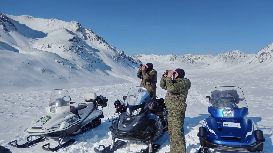 На фото - госинспекторы опергруппы наблюдают заповедную территорию.