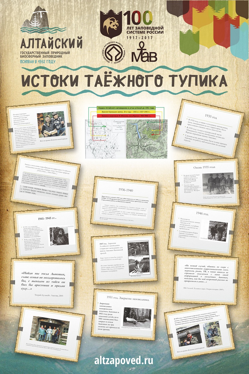 Одна из экспозиций была посвящена Алтайскому заповеднику и истории староверов Лыковых, заимка которых находилась на заповедной территории до 1951 года. Об "Истоках таёжного тупика" в своём выступлении рассказала Екатерина Шичкова, методист отдела экологического просвещения Алтайского заповедника.