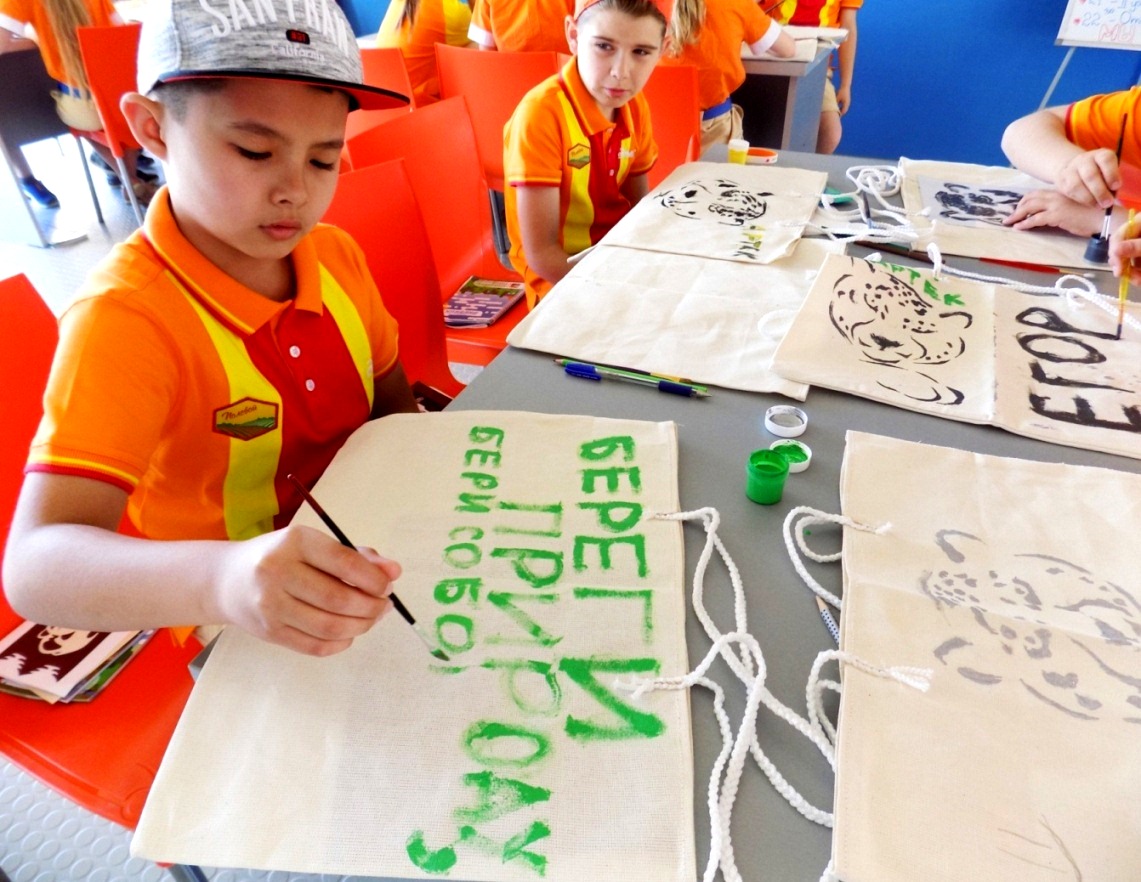На вопросы «что такое пластик» и так ли он хорош, попытались ответить малыши из 9-го отряда на экоуроке Анны Маймановой (Катунский биосферный заповедник). В творческой части занятия дети занимались росписью экосумок. Получившиеся авторские сувениры дети подарят своим родителям и расскажут, что пакеты можно заменить на практичные и долговечные сумки.
