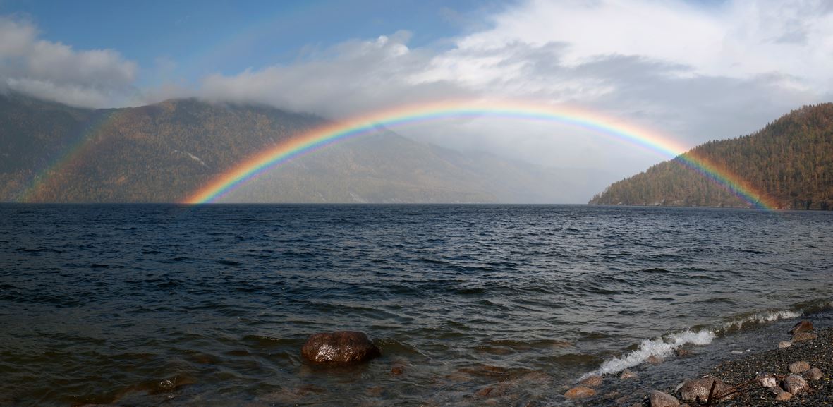 Радуга в октябре на Телецком озере, в Алтайском заповеднике. Фото Сегрея Усика, государственного инспектора Алтайского заповедника.