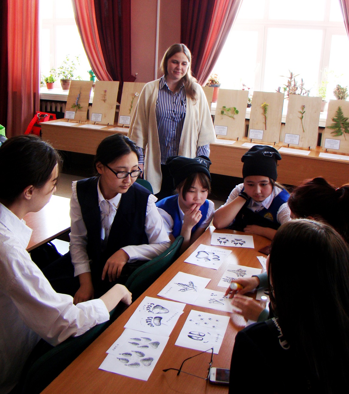 В ходе мероприятия школьникам рассказали о научном отделе заповедника и его основных задачах, представили выставку «альтернативного гербария» растений, произрастающих на заповедной территории. Продемонстрировали презентацию, сопровождаемую рассказом о традиционном и альтернативном гербариях. Затем участникам мероприятия было предложено побыть в роли научного сотрудника - полевика и определить вид животного по его следам. Самыми узнаваемыми животными оказались лось и снежный барс, а вот следы росомахи спутали с медвежьими.