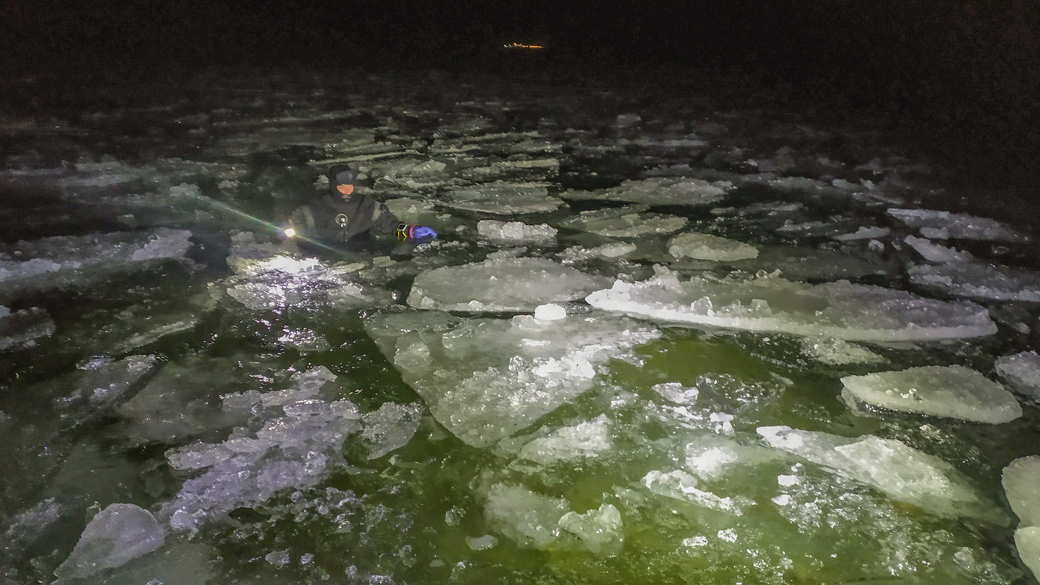 - Не перестаем удивлялся какие сюрпризы может преподнести озеро, рядом на берегу которого мы живем и работаем. Все новогодние праздники волны с грохотом разбивались о берег катая по нему гальку, а иногда и...нас, иногда ветер стихал к вечеру. Казалось бы, что может быть неожиданного? Все как обычно, начали собираться на погружение. Но внезапно послышался хруст и звон небольших и редких льдинок. Прошло не более получаса и на всем расстоянии, которое освещали наши фонари, со скрежетом громоздились, терлись друг о друга в несколько слоев теперь уже большие и тяжелые ледовые поля.