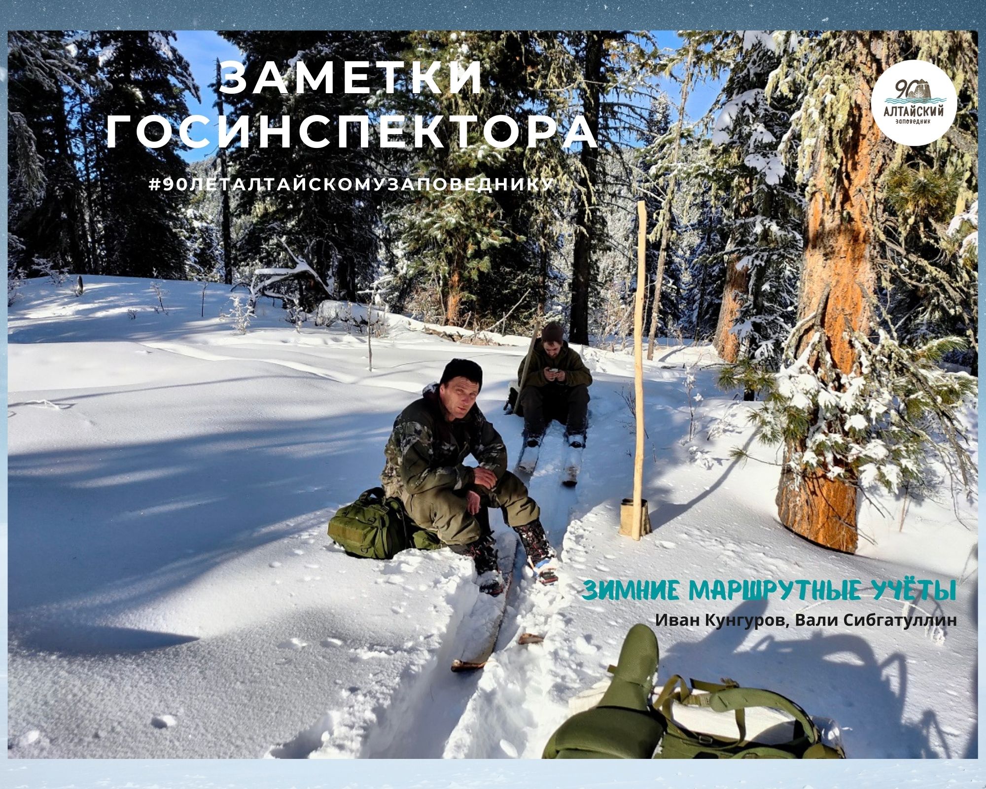 Представляем вашему вниманию новую рубрику нашего сайта - "Заметки госинспектора". Сегодня в нашем сюжете - рассказ государственных инспекторов оперативной группы охраны Алтайского заповедника Ивана Кунгурова и Вали Сибгатуллина об участии в ЗМУ (Зимних маршрутных учётах).