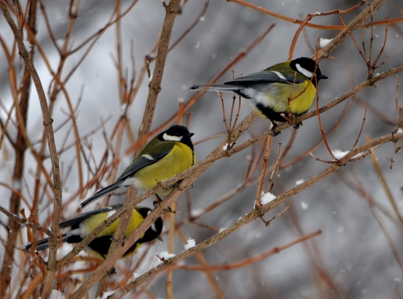 Для моих подопечных пернатых этот месяц стал серьезным испытанием. Все открытые места покрылись снегом, и добывать пропитание стало намного сложнее. Птицы охотно откликались на подкормку. В первых рядах, конечно, были большие синицы Parus major.