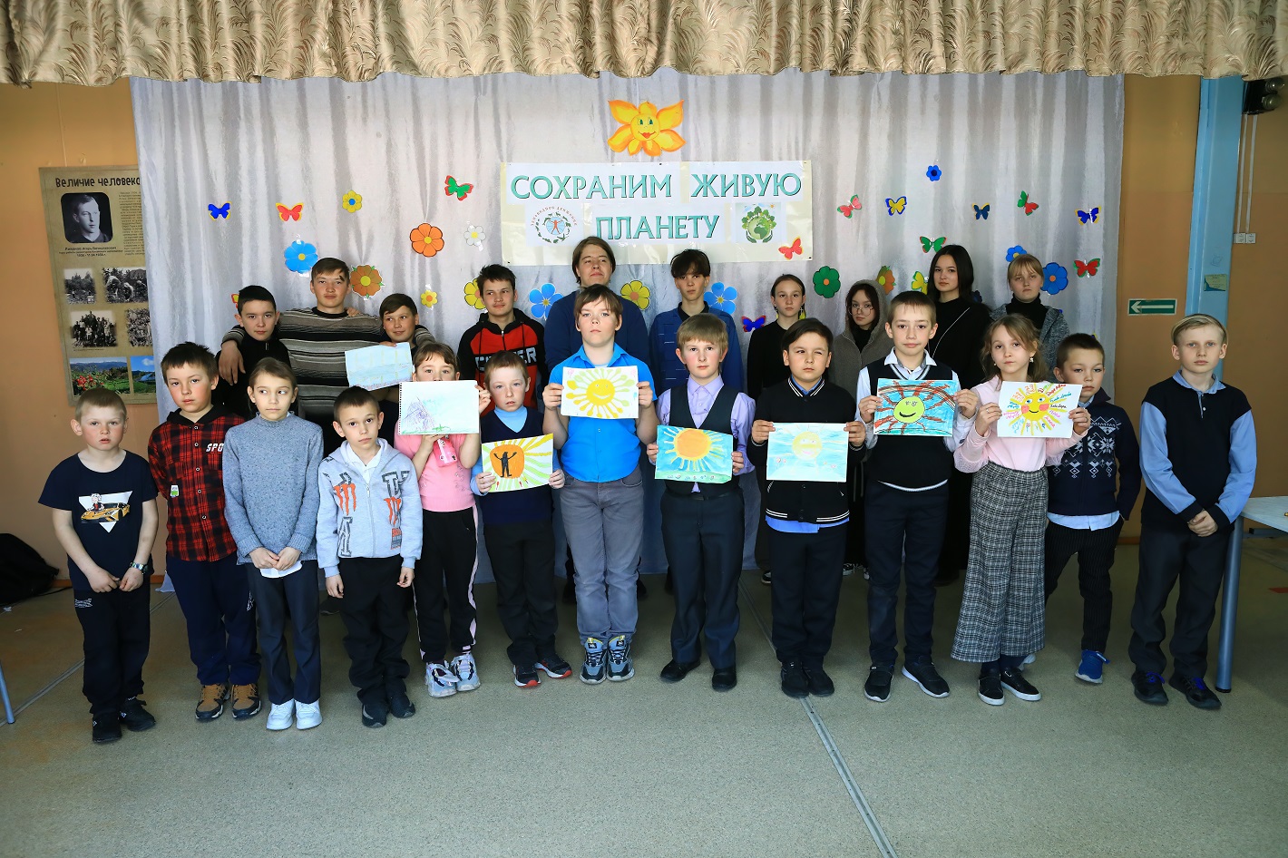 Классные руководители школы подготовили к Дню Земли художественные номера, стихи, игры, пантомимы. Школьники активно участвовали в различных конкурсах на знание животного и растительного мира. Специально к празднику ученики представили свои рисунки, в которых прослеживалось внимательно и бережное отношение к природе. И ребята это прекрасно понимают, не зря же живут в заповеднике! Наиболее активные участники праздника были отмечены призами от Алтайского заповедника.