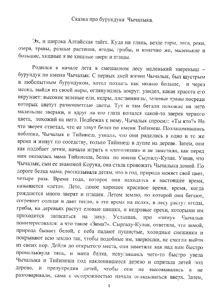 Сказка про бурундука Чычалыка