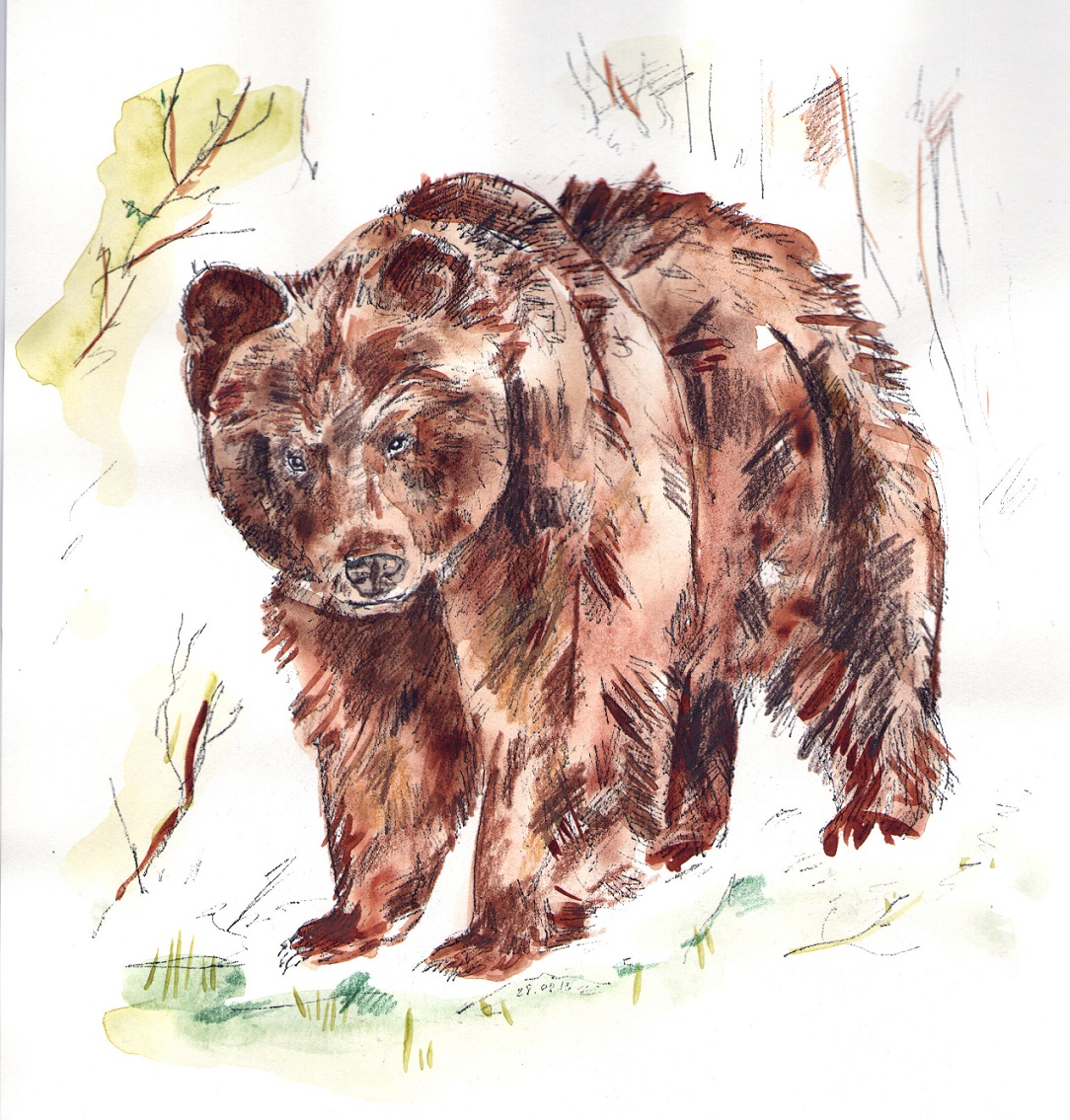 А Лиса в это время внимательно наблюдала и думала про себя: «Ну нет, дорогой Медведь, ты не стоишь того, чтобы я рассказывала тебе истории. Я вижу много следов зверей. И все они ведут в твою берлогу, а оттуда не выходят. Значит, это знак предупреждения, чтобы я ни на шаг не приближалась. Оба мы хорошо знаем, что это значит.»