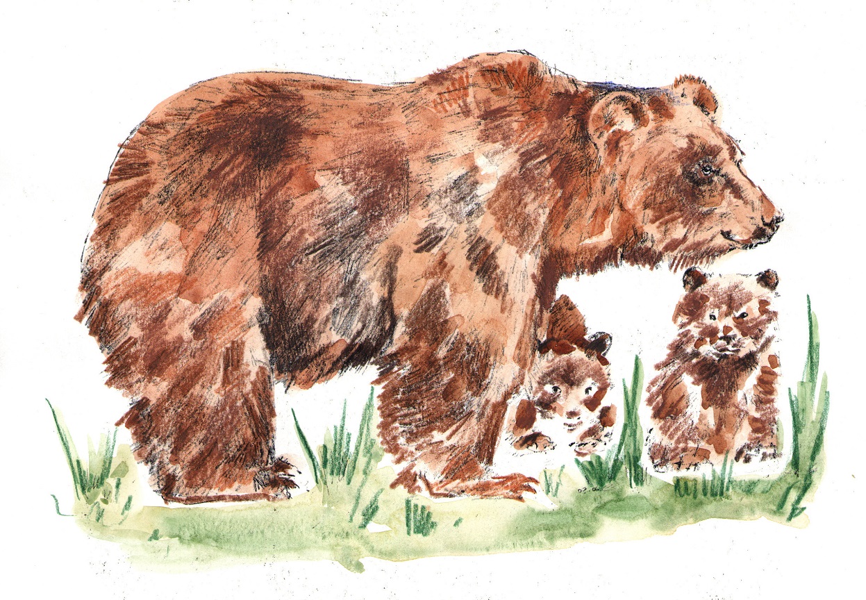 Давным-давно в долине Алтайской тайги жила семья медведей: мама и три медвежонка. Каждое утро они ходили умываться на водопад. Медвежата купались, плюхались прям как дети, а мама медведица их бранила, вытаскивала из воды, но они всё равно залезали в воду. После купания вся семья ходила на прогулку. Медвежата валялись на травке и баловались, кусали друг другу уши. Им хорошо жилось на Алтае.