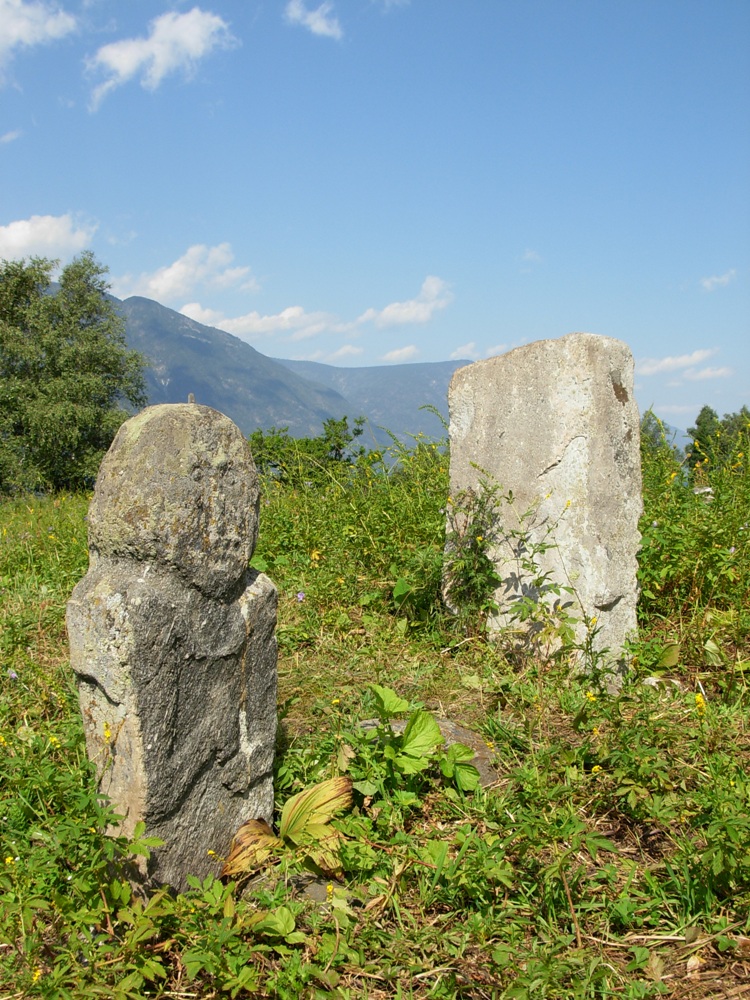 Большинство же других изваяний - попроще. Где выбито только лицо, где - в дополнение - еще и детали одежды, оружие. А где и просто устанавливались камни, лишь схематично напоминающие человека. (1)