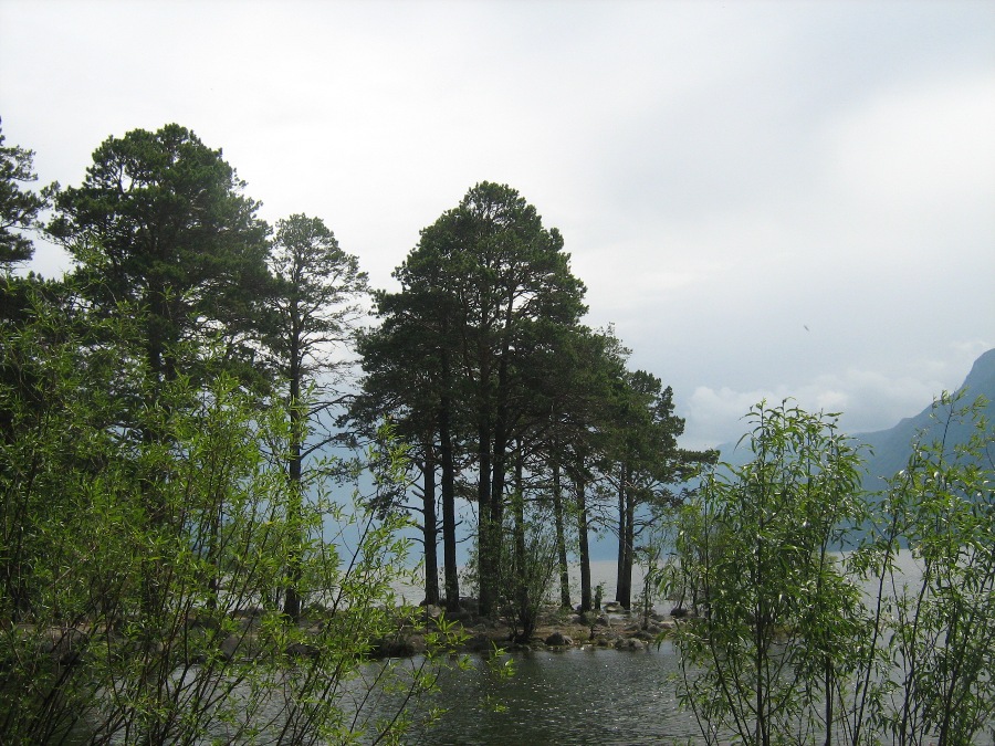 Южнее впадения Кокши горы заметнее выше, а озеро шире, хотя сложно определить его ширину. Воздух настолько чист и прозрачен, что на противоположном берегу хорошо просматриваются деревья невооруженным глазом, и кажется, что он совсем рядом, а до него около 5 километров.