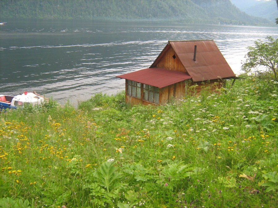 Берега изрезаны и выдаются в озеро небольшими отлогими мысами, сложенными из мелкого галечника. Примерно в километре от кордона - последний в этой части озера галечный мыс Кумзир. До него от истока Бии 14 километров. Здесь же впадает одноименная речушка.