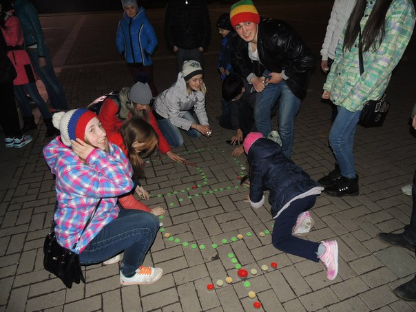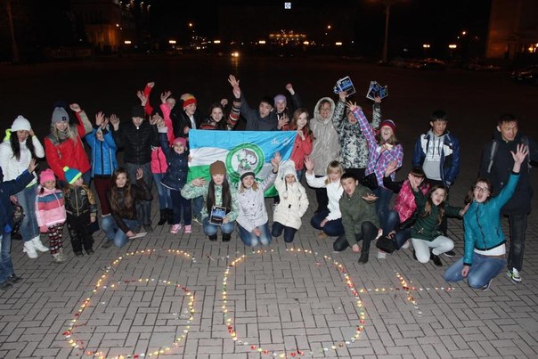 А ребята из экологических клубов друзей Алтайского заповедника «Озеро Чудес» и «Айучак» решили дома выключить свет и собраться на площади – «29 марта в 20.30 на площадь приходи, и свечу с собой неси (плавающую), дома свет ты погаси и гулять ты выходи. Мы попробуем с тобой эмблему выложить свечой». Для популяризации создали группу в контакте, пригласили своих друзей.