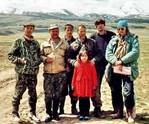 • И.П.Кислицын (слева) с участниками экспедиции на плато Укок на границе с Китаем