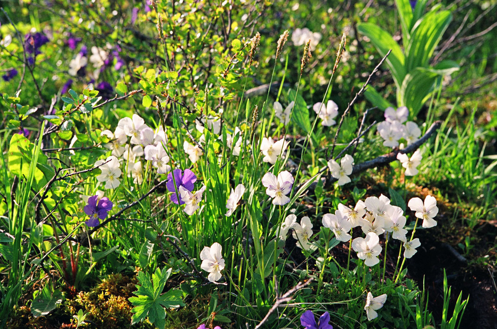 Ботаническое описание. Фиалка алтайская (Viola altaica Ker Gawl.), синоним – Фиалка одноцветная (Viola monochroa Klokov) – многолетнее травянистое растение, вид рода Фиалка (Viola) cемействa Фиалковые (Violaceae). Растение высотой 5-15 см. Корневище многоглавое с тонкими разветвлениями, преходящими в стебли, надземные стебли с укороченными междоузлиями и скученными листьями. Листовые пластинки продолговатые, в основании клиновидные, без буроватых точек и штрихов, 10-81 мм длиной и 3,5-25 мм шириной, городчато-пильчатые, с 5-10 зубцами на каждой стороне, почти голые. Прилистники перистораздельные. Цветки крупные, 3,5-5 см в диаметре, желтые, сине-фиолетовые или пёстрые, жёлто-синие (разного цвета у разных особей). Коробочка продолговато овальная, 10-11 мм длиной.