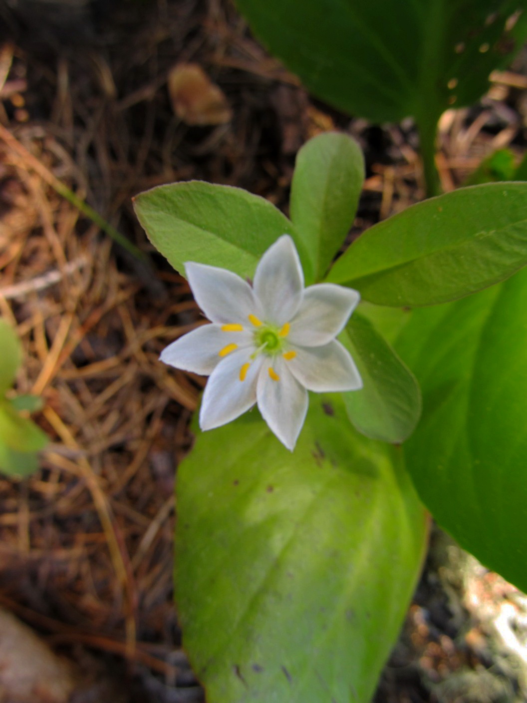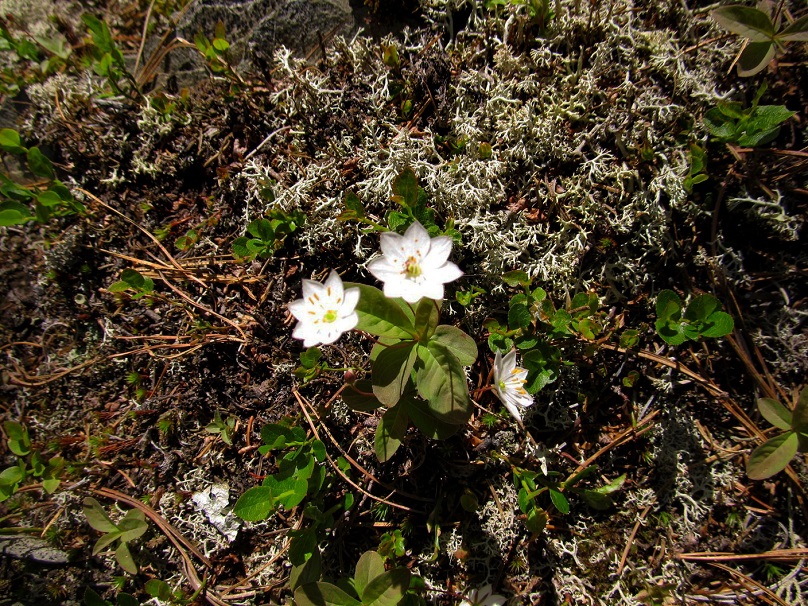 Ботаническое описание. Седмичник европейский (лат. (лат. Trientális europaéa) –многолетнее травянистое растение, вид рода Седмичник (Trientalis) семейства Первоцветные (Primulaceae). Голое растение высотой 6-15 см с длинными нитевидными подземными побегами, на концах которых образуются клубневидные утолщения. Стебель простой, прямой, тонкий. Нижние листья в небольшом количестве (1-3), удаленные друг от друга, очередные, мелкие, сидящие, обратно-яйцевидные, тупые; верхние листья более крупные, сближены в мутовку (большей частью по 7, изредка 5-9), неравные, продолговато-обратнояйцевидные или обратно-ланцетные, большей частью коротко заостренные, к основанию постепенно суженные. Цветки снежно-белые, довольно крупные, до 1,8 см в диаметре, на длинных, тонких цветоножках, выходящие большей частью по 1-2 из мутовки стеблевых листьев; венчик колесовидный, почти до основания раздельный (4), из 7 (реже 5-9) лепестков. Тычинок и долей глубоко-раздельной чашечки по числу лепестков, тычинки прикреплены к основанию венчика. Цветет в мае – июле месяце. Плод – коробочка, раскрывается вниз загибающимися створками (их столько же, сколько лепестков).