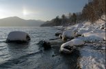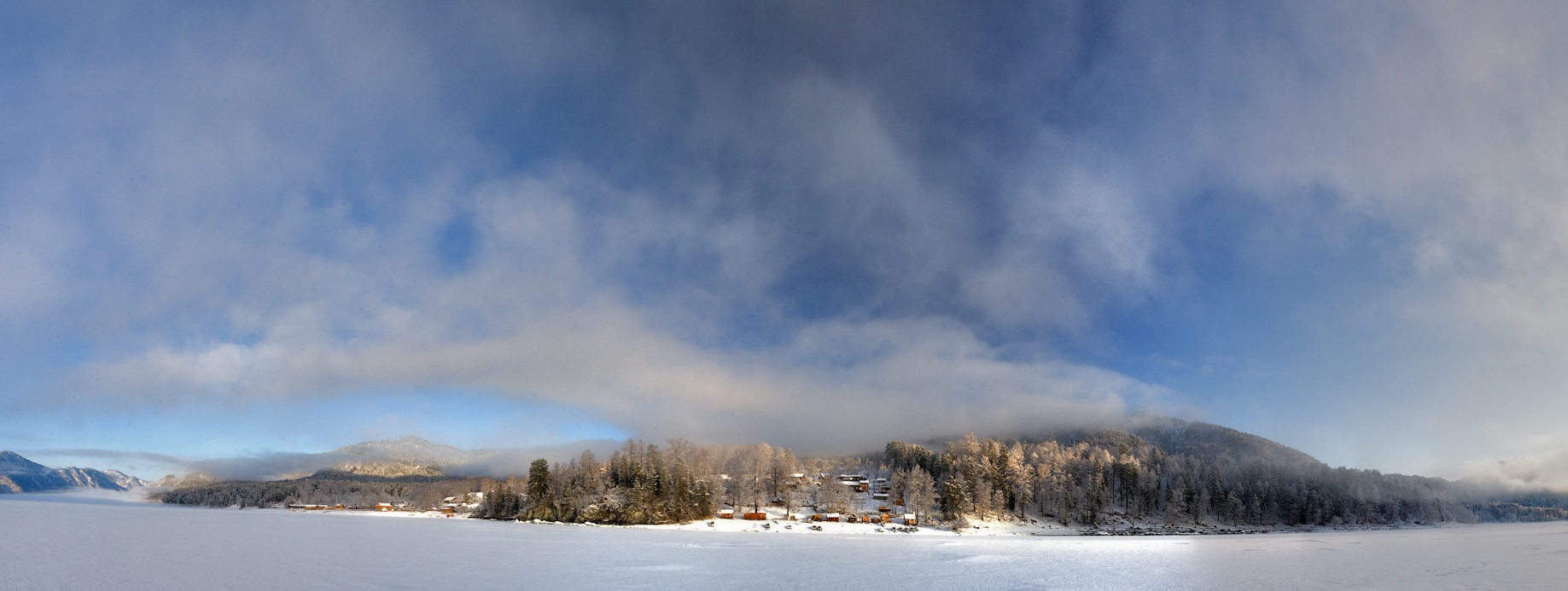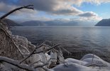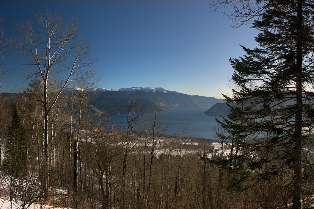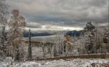 • Алтайский заповедник. Первый снег на Телецком озере. Вид с дороги с перевала Клык.
