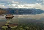 • Алтайский заповедник. Телецкое озеро. Мыс Кырсай. Вид в сторону протоки Чебачьей. Прямо Туалок. Слева залив Кыга, справа устье Чулышмана.