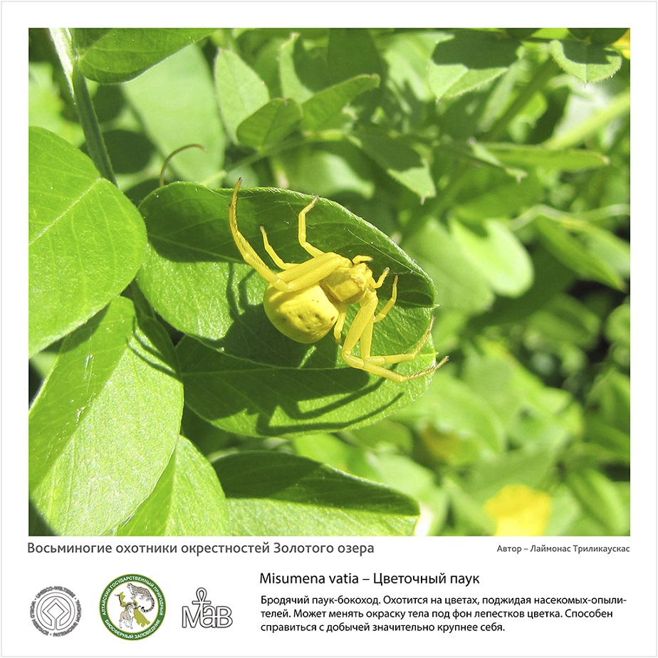 Автор фотографий и текстовых описаний -  Лаймонас Триликаускас, к.б.н., младший научный сотрудник лаборатории систематики беспозвоночных животных Института систематики и экологии Сибирского отделения Российской академии наук (г. Новосибирск). В рамках договора о научном сотрудничестве Л. Триликаускас исследует видовой состав и экологию пауков Алтайского заповедника.