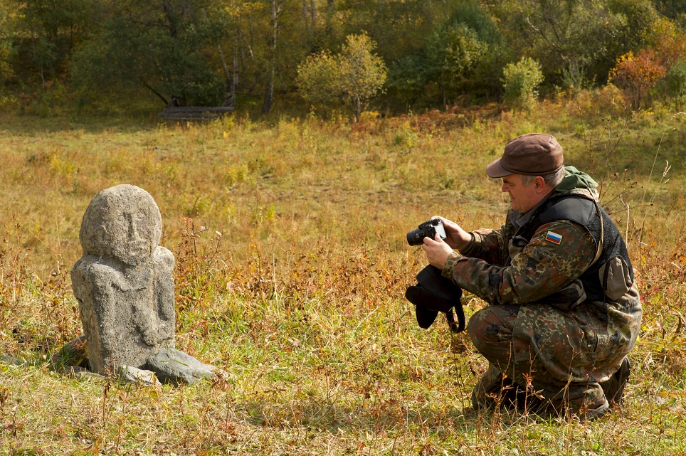 С 24 по 28 сентября 2014 года на территории Алтайского биосферного заповедника проводились археологические рекогносцировочные работы. Исследования осуществлялись ведущим научным сотрудником Института археологии и этнографии СО РАН, доктором исторических наук Андреем Павловичем Бородовским. Целью научных работ являлось обобщение данных о ранее выявленных случайных находках и археологических памятниках, а также комплексный осмотр наиболее перспективных территорий для выявления ранее неизвестных объектов археологического наследия. Маршрут обследования проходил по северо-восточному побережью Телецкого озера: с. Яйлю, мыс Чачилган, устье р. Турочак, залив Камга, кордон Челюш, кордон Беле. Были детально обследованы уже известные науке объекты, как например знаменитое каменное изваяние на Белинской террасе.