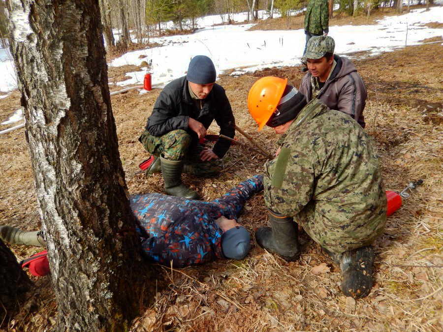 Неожиданно для всех, один из пожарных падает без сознания. По легенде учений, на него упало прогоревшее дерево. Итог: перелом руки и черепно-мозговая травма, срочно нужно оказать первую помощь и провести эвакуацию. Секундное замешательство,