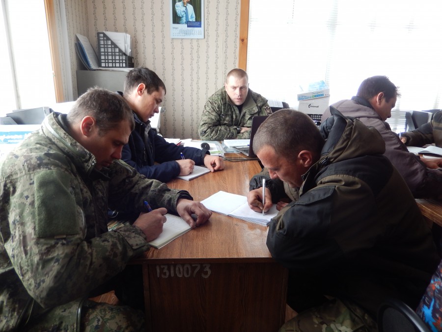 Проигрывались различные ситуации, возникающие при задержании нарушителей. По различным вводным составлялись протоколы.