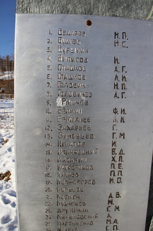 Именной список безвозвратных потерь личного состава Турочакского аймака, Ойротской АО, Алтайского края за период с 22 июня 1941- по 9 мая 1945 года