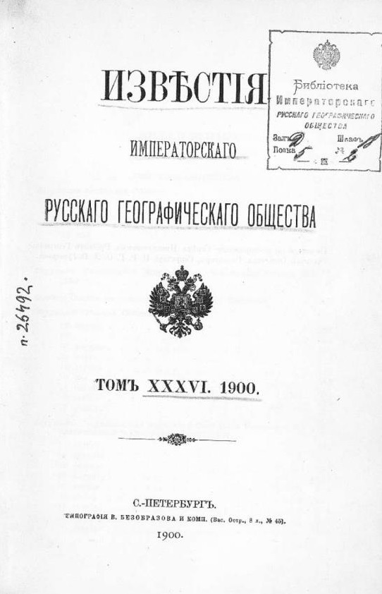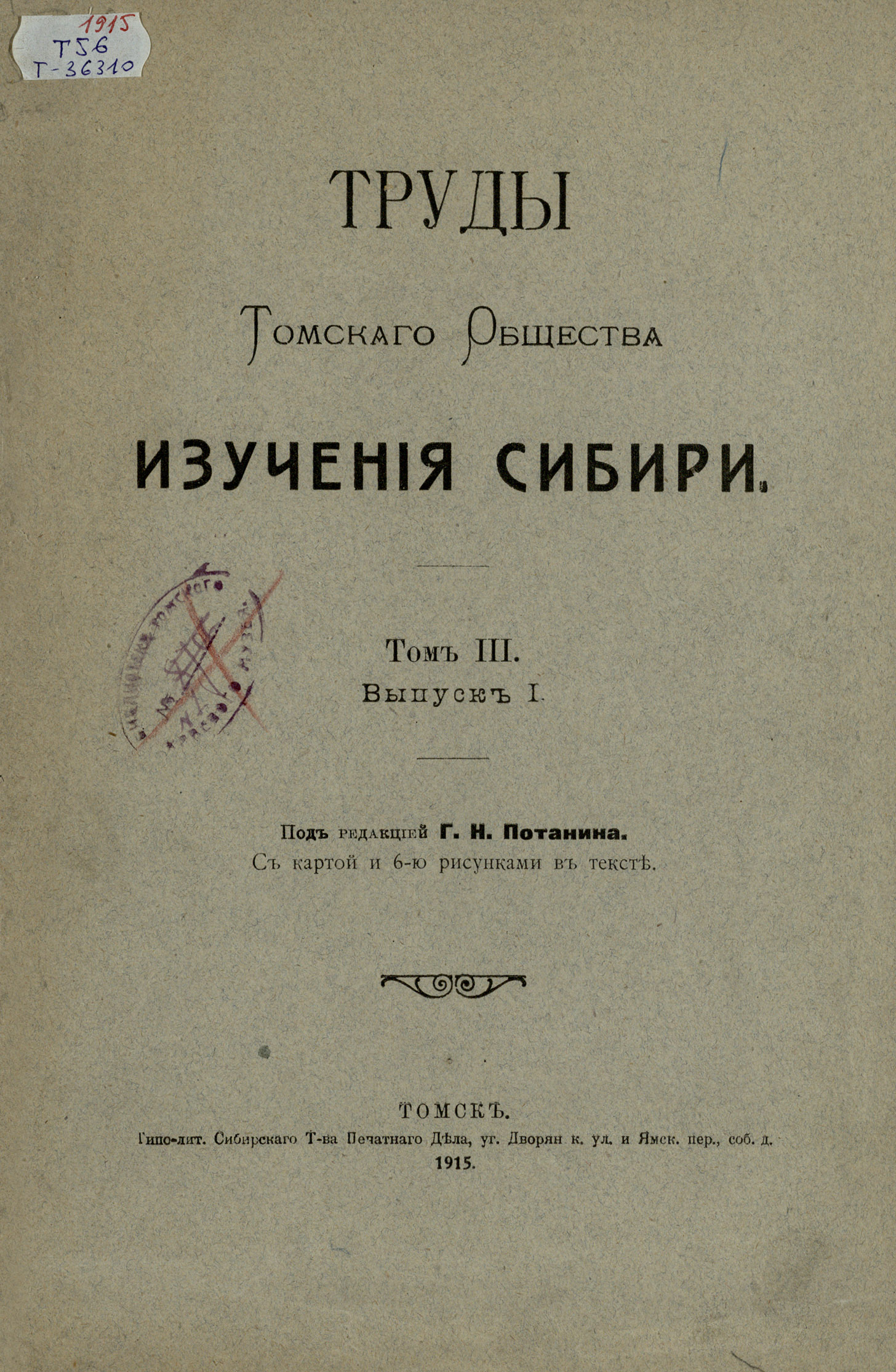 Россия. Полное географическое описание нашего отечества : настольная и дорожная книга для русских людей: [в 20 т.] / под ред. В. П. Семенова-Тян-Шанского ; под общ. рук. П. П. Семенова-Тян-Шанского и В. И. Ламанского. — Санкт-Петербург : Издание А. Ф. Девриена, 1899-1914. Т. 16 : Западная Сибирь : со 104 политипажами, 34 диаграммами, картограммами и схематическими профилями, 1 большой справочной и 9 малыми картами / сост. И. П. Толмачев [и др.]. — 1907. — VIII, 591, [1] с. : ил., фото ; 22 см.