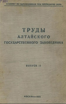Труды Алтайского заповедника. Вып1. - М,1938 год. Под общей редакцией проф. В.Г. Гептнера. Настоящий, первый выпуск "Трудов" отражает в себе начальный период деятельности Алтайского заповедника. В нём, наравне с экологическими, значительное место занимают фаунистические статьи. Они представляют собой итоги первых и очень важных работ по выявлению состава и распределения фауны, проделанных в значительной мере в сотрудничестве с Зоологическим музеем при Московском государственном университете. Работы этого выпуска - основа для дальнейших исследований, темы которых часто прямо намечаются в публикуемых статьях. Читать PDF (84,35 МБ)