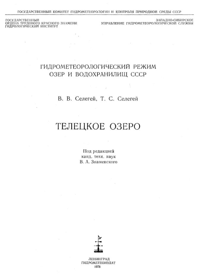В.В. Селегей. Телецкое озеро. Очерки истории. Книга вторая. - Новосибирск: ЗАО "ФинСиб", 2010. - 174с. Редактор В.Г. Новиков.