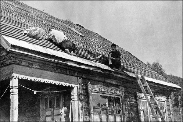 Да-да, чинят крышу щепой, которую надрали на том водяном станке.