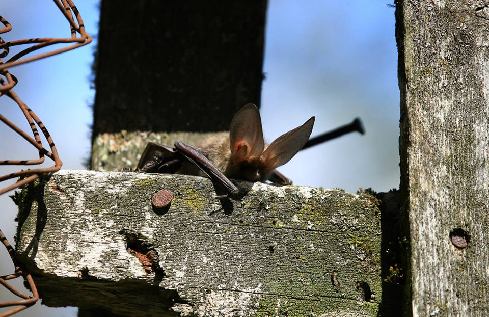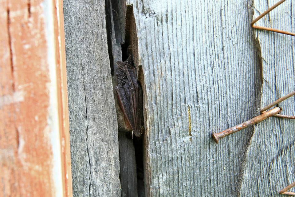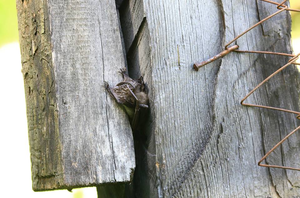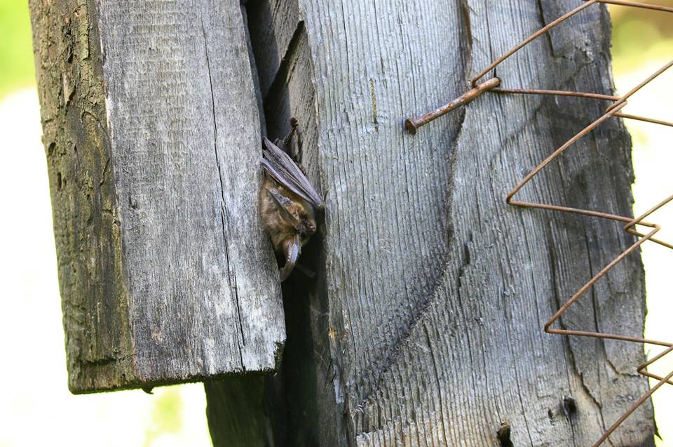 Мышка полетала вокруг кустов сирени, что росли рядом, и села на стенку сарая. Я подошел поближе и понял, что она охотилась; мышка хрустела хитиновым скелетом какого-то насекомого. Оказывается, летучие мыши охотятся и днем!