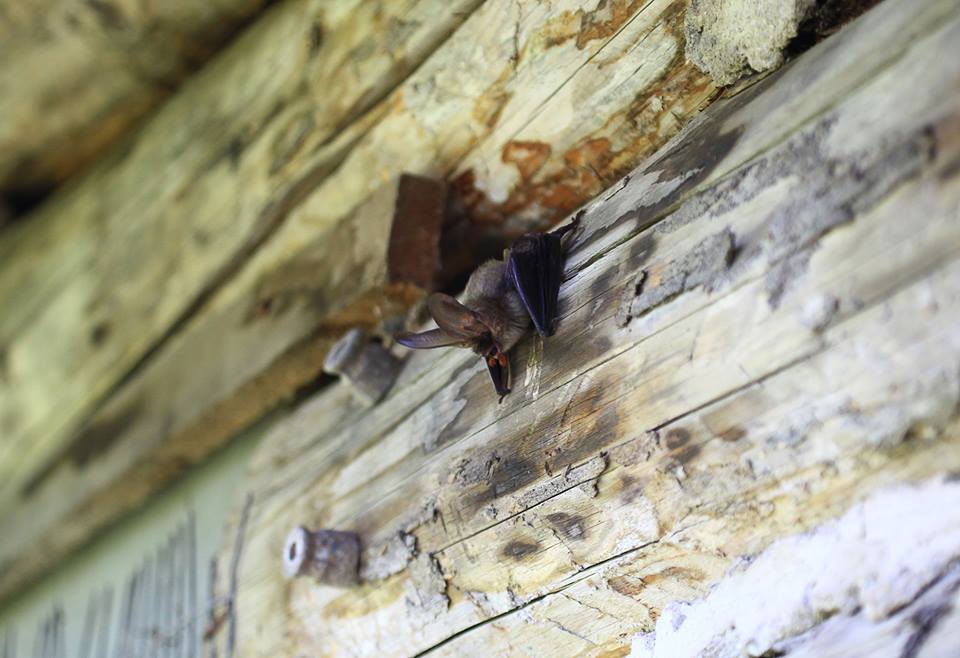 Но потом мышка наконец-то залезла в щель, обернувшись крыльями словно одеялом. Я постоял, понаблюдал и не стал больше тревожить летучую мышь....