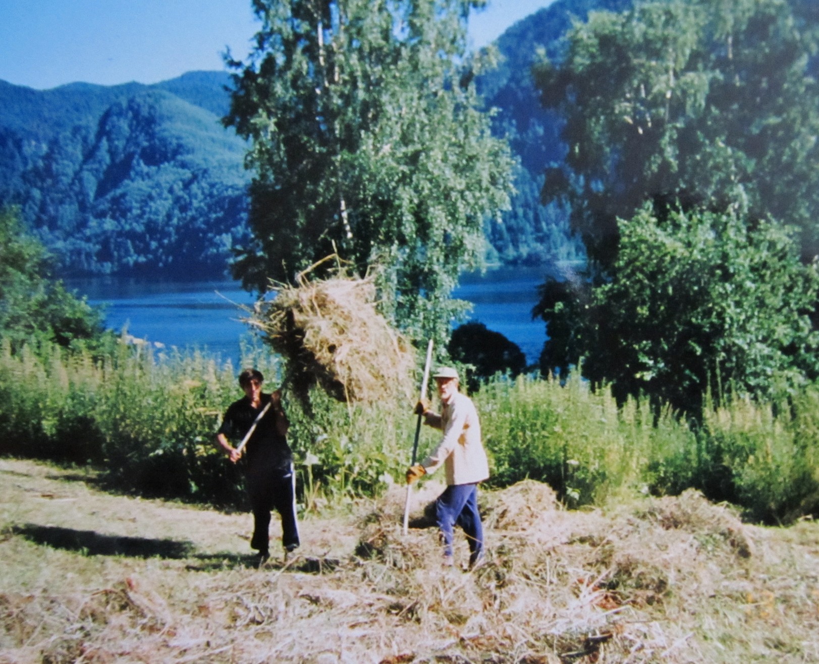 Жители заповедного кордона Байгазан всегда держали скот, иначе не прожить в месте, периодами отрезанном от остального мира. Поляны в окрестностях кордона, где хозяйственная зона, большие и светлые, хорошее разнотравье – все это важная составляющая при заготовке сена. В настоящее время, сотрудники, проживающие на кордоне, тоже держат скот и с сенокосом знакомы не понаслышке. Ежегодно сенокосное время занимает добрую часть лета, а оно, в северной части Телецкого озера достаточно дождливое. Поставить здесь хорошее сено, ни разу не побывавшее под дождём – большая удача, поэтому ценен каждый погожий денёк. За годы жизни на кордоне можно по пальцам посчитать такие, когда сенокос проходил без сучка и задоринки. Вспоминаются годы, когда выкосить траву помогали друзья. Выкашивали сразу большую площадь, но затяжные дожди превращали сено в несъедобную для скотины субстанцию. Бывали годы, когда сена не хватало, чтобы «дотянуть» до зелёной травки. Тогда приходилось урезать «пайку», ведь купить сено было так же сложно, как и доставить его в весеннее время до кордона.