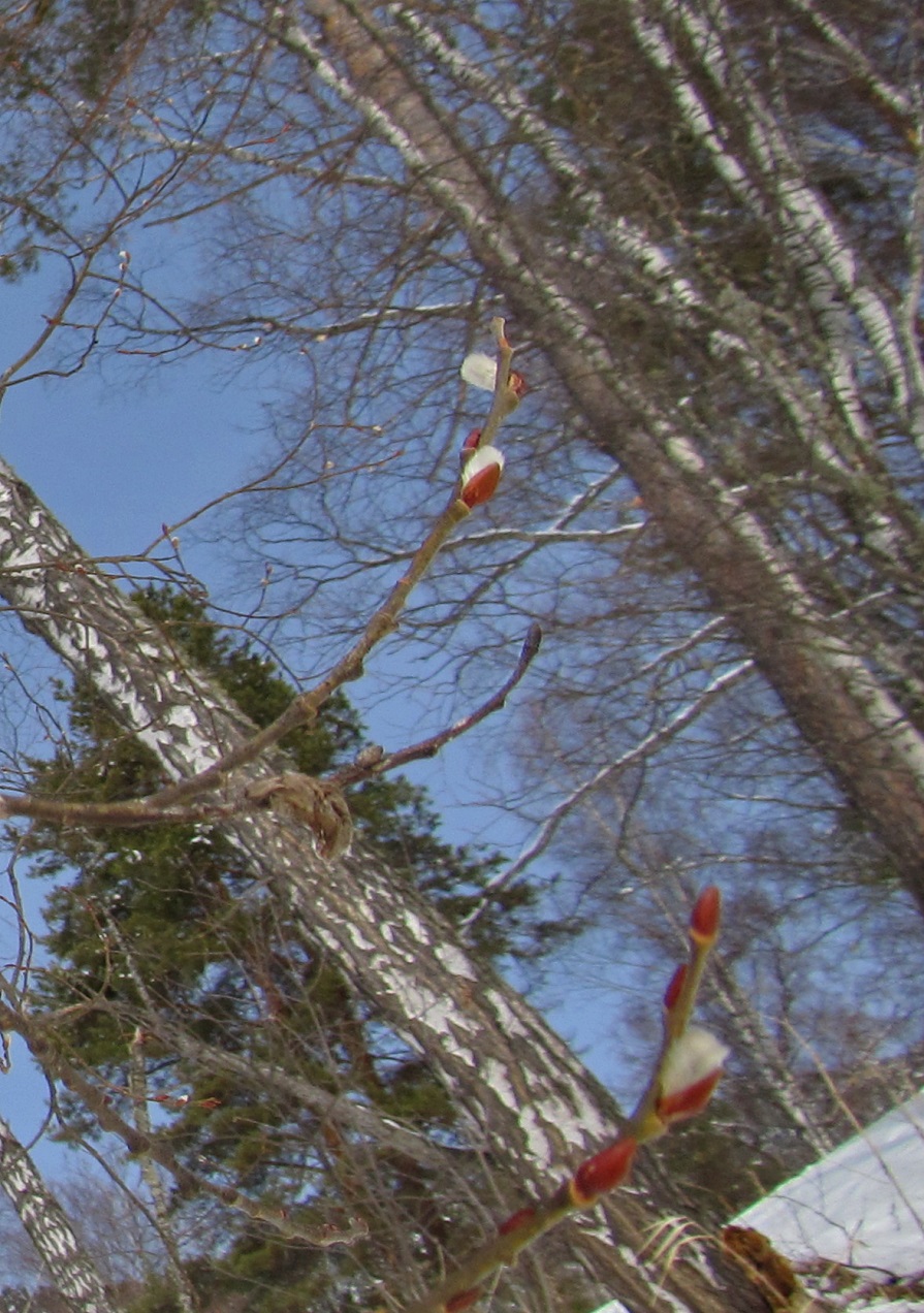 Начала распускать почки и ива козья, но у неё этот процесс лишь начался – только пара веток оказалась с распустившимися почками, остальные ещё не торопятся.