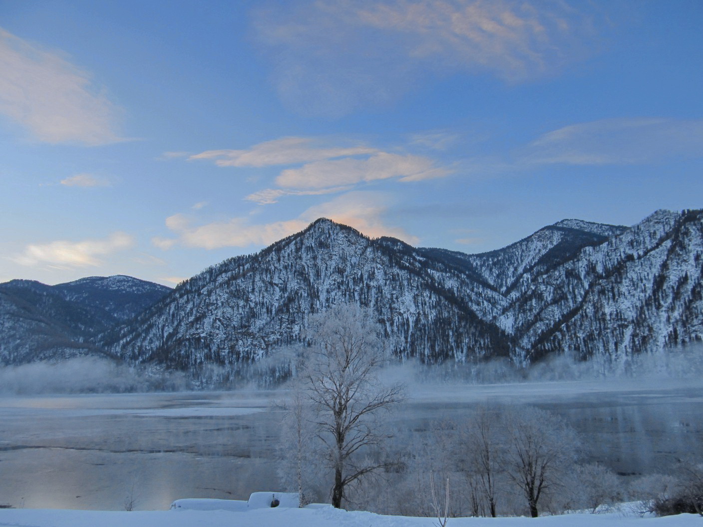 Наблюдать за Телецким озером интересно в любое время года, оно всегда разное, неповторимое, заманчивое и порой пугающее. Зимой своя особенная красота – туман стелется воздушным покрывалом над озером, когда оно парит при больших морозах, когда идет «битва» между «верховкой» и «низовкой».