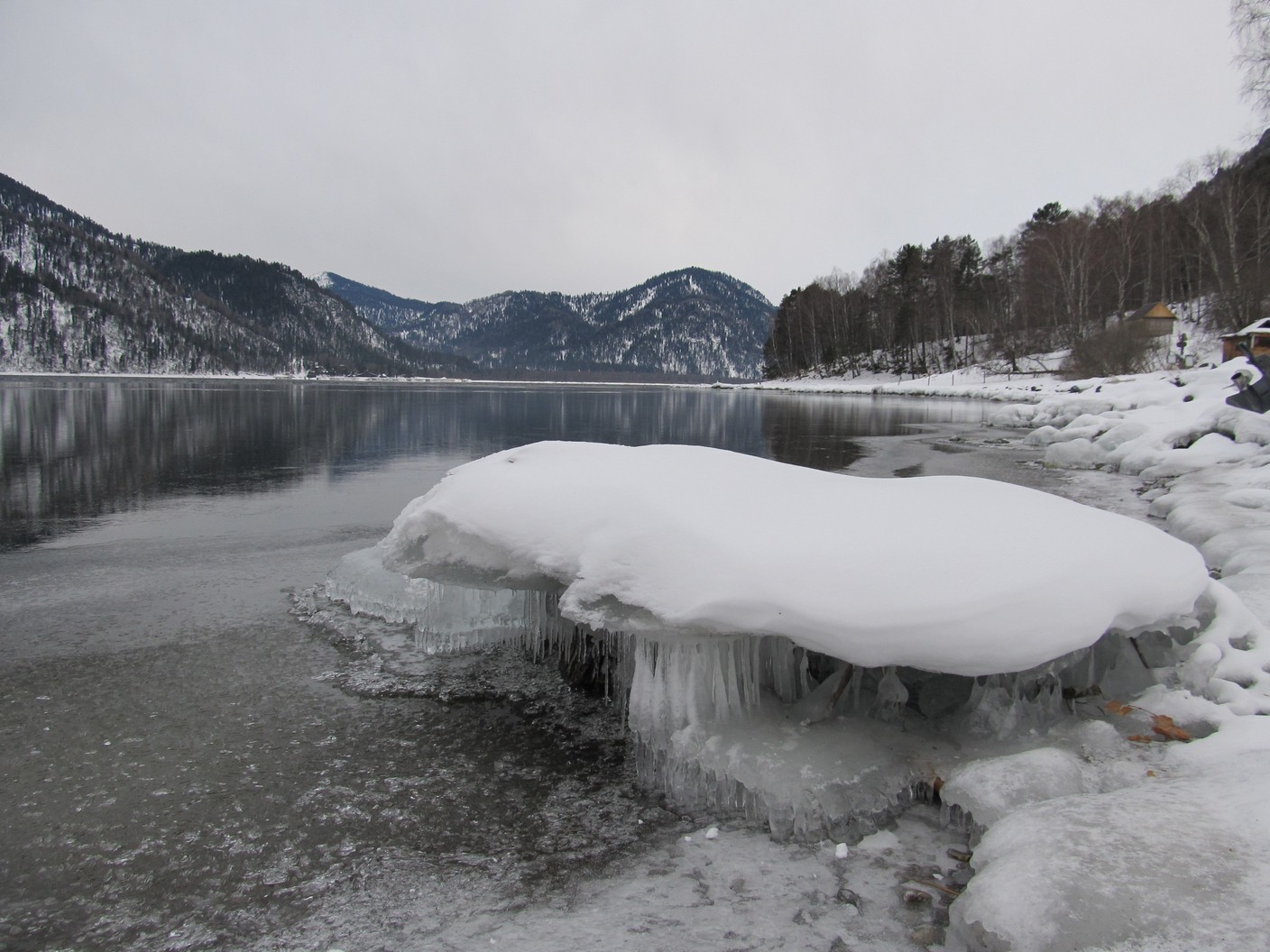 Если не приходит «верховка» или «низовка», то озеро «схватывается» льдом окончательно. Каждый год Телецкое озеро в окрестностях кордона Байгазан замерзает в разное время, чаще всего в январе, но бывало, замерзало и в феврале. Этой зимой попытки замерзнуть озеро предпринимало не однократно, но к концу января оно уже не шутило.