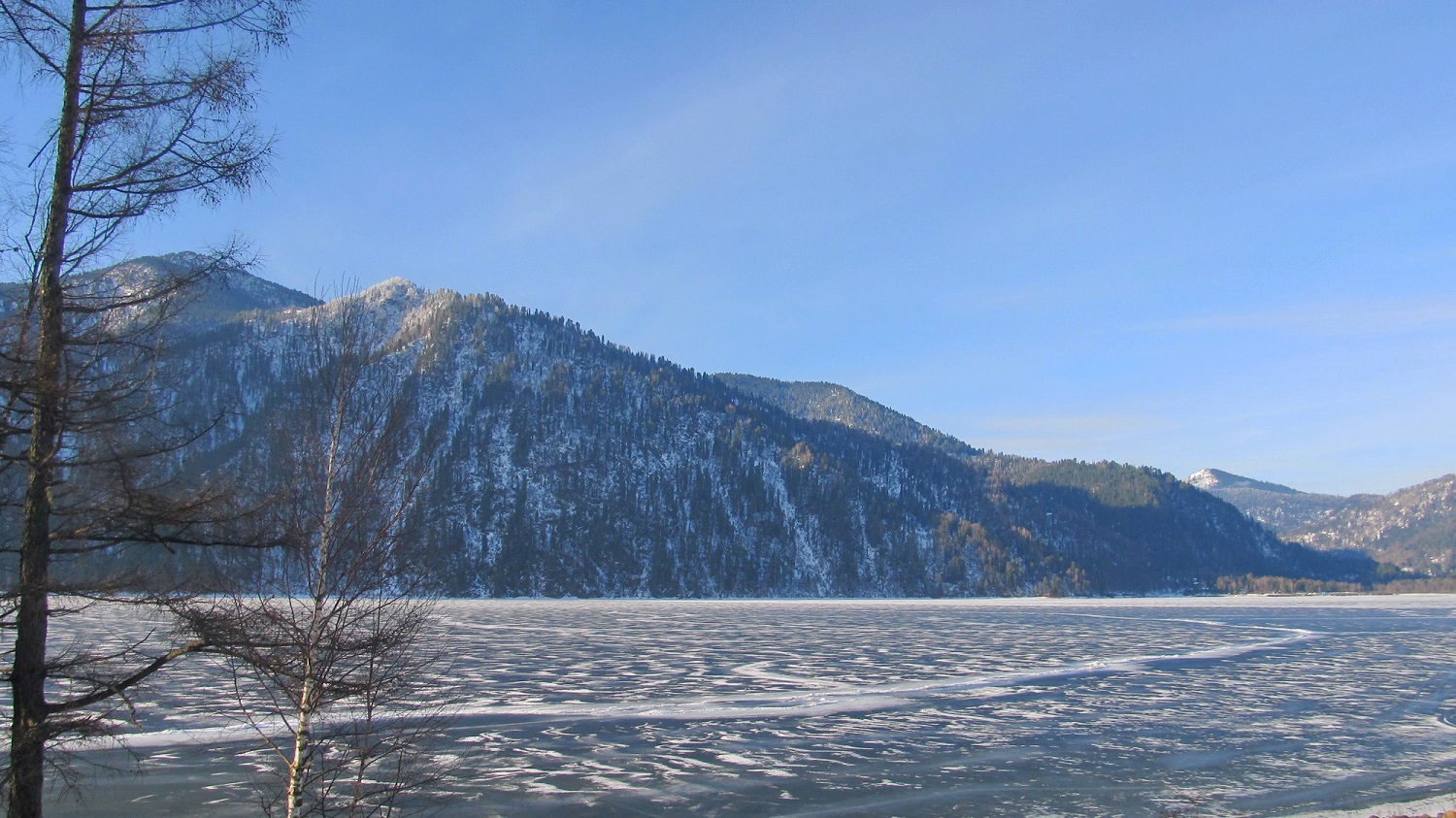 Но само озеро еще крепко спит под толстым слоем льда. Не скоро еще появятся первые проталины на льду озера, только в апреле. От Мыса Ажи до Артыбаша лёд ещё держится. Пока лед чистый и его не успело прикрыть слоем снега, можно увидеть красивые узоры, которые оставляют трещины на льду, иногда можно увидеть сухой листик, вмерзший в лед – лежит, всматриваясь с интересом в водную глубину, в надежде увидеть там что-то необычное. Если повезет, можно успеть заметить на небольшой глубине стайку рыбешек, ведь прозрачная вода и лёд озера это позволяют. Причудливая картина дна озера со сказочным пейзажем также всегда завораживает, поэтому прогуляться по льду озера всегда интересно, но только надо быть предельно внимательным и осторожным. Когда лежит снег на льду озера, то прикрывает от человеческого взора все его тайны. Пусть озеро отдохнет, наберётся сил.