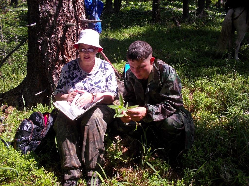 Знакомство с сотрудниками ЦСБС СО РАН было особенно полезным для Виталия, опытные научные сотрудники знакомили госинспектора с видовым разнообразием высших сосудистых растений, научили работать с определителем растений и помогли собрать гербарий для дальнейшего обучения и профессионального роста.
