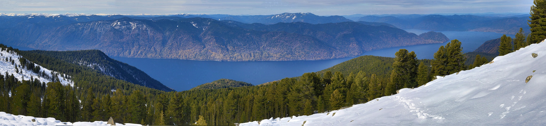 Вид на Телецкое озеро с Корбу. Панорама Владимира Лотова.
