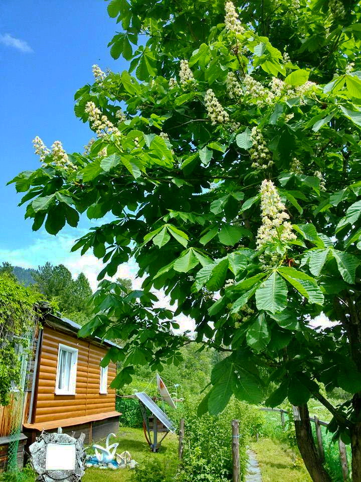 Рядом с домом цветет каштан, посаженный когда-то здесь хозяевами.