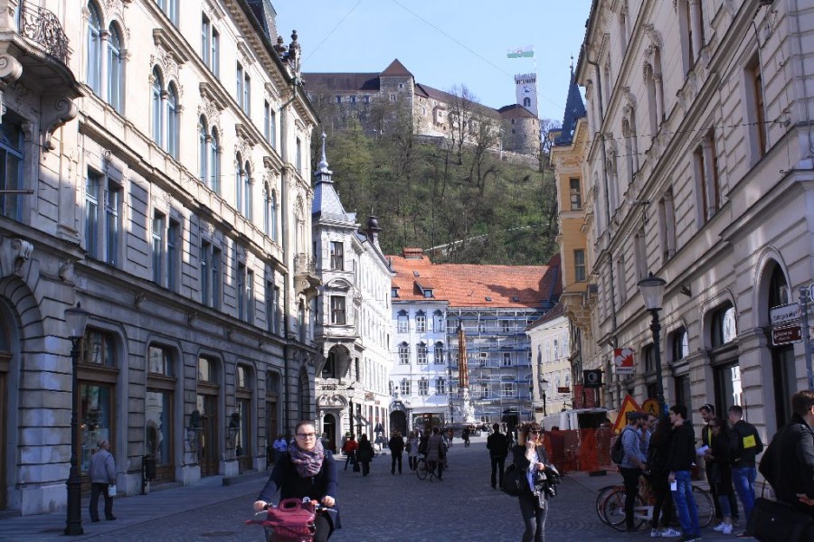 Вид на Люблянский град - на вершине холма. Туда мы и направляемся.