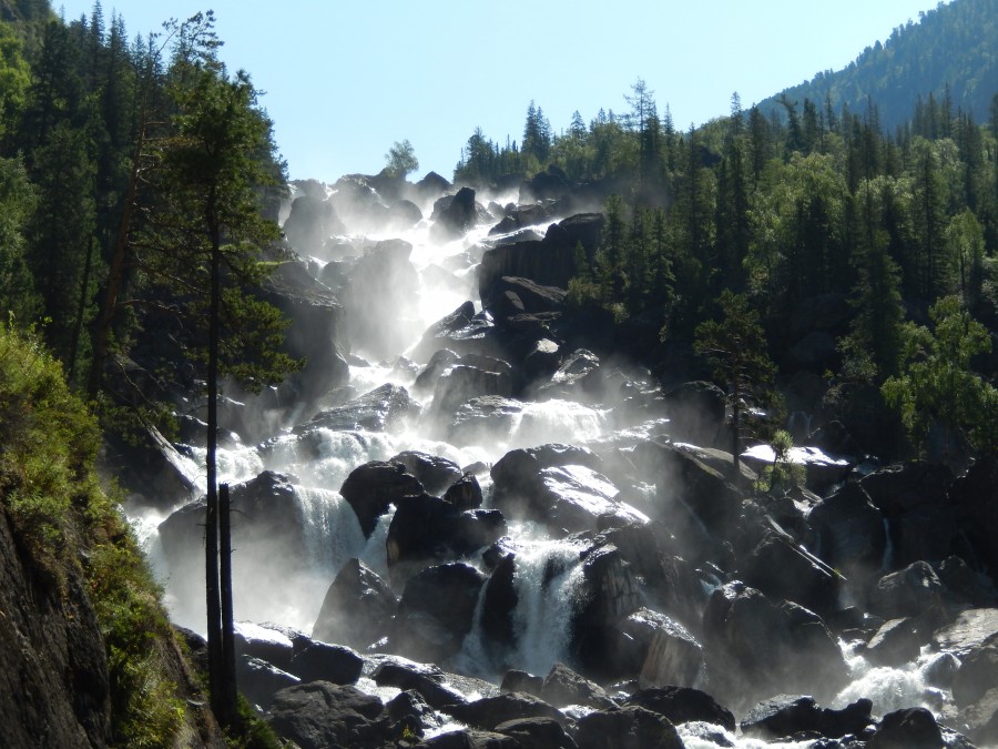 Рано утром выдвинулись в путь-дорогу. Удивил поток автомобилей в направлении к долине Чулышмана. Никогда ранее не доводилась видеть столько транспорта на этих дорогах. В этой связи - спуск с перевала Кату-Ярык стал еще более сложным. Невозможность разъехаться двум машинам в сочетании с незнанием элементарных правил вождения на горной дороге, создавало непростые моменты. Нас очень выручала рация. Была возможность предупредить другую машину об очередной веренице поднимающихся машин снизу.