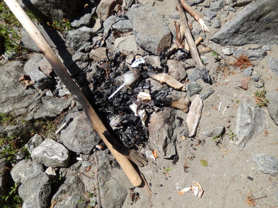 Другая неприятная находка - костровище. Это лето выдалось жарким. Трава сохнет на корню превращаясь в пожароопасный материал, тут не только костер - любой окурок может стать причиной большой беды.