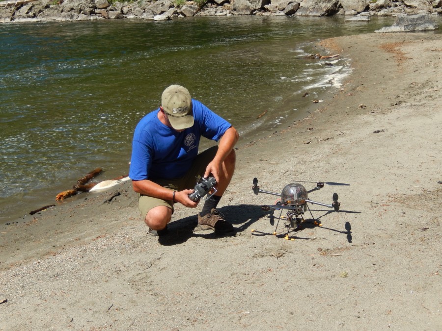 Валентин уже отснял необходимые панорамы и пытался запустить коптер. Но капризная техника наотрез отказывалась лететь. Встроенный GPS-навигатор "не видел" необходимого количества спутников. Узкое ущелье препятствовало соединению со спутниками. А без этого квадрокоптер не может лететь. Запускать полностью на ручном управлении - опасно. Кругом деревья и кустарники, бурная Чульча. Решили не рисковать.